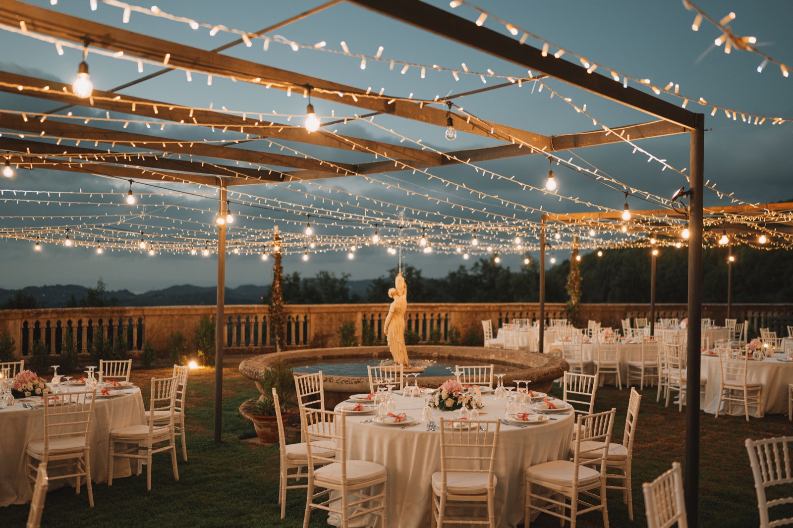 Sicil Lux rende magico il vostro matrimonio illuminando le location con eleganti luminarie, cascate di luci ed effetti luminosi